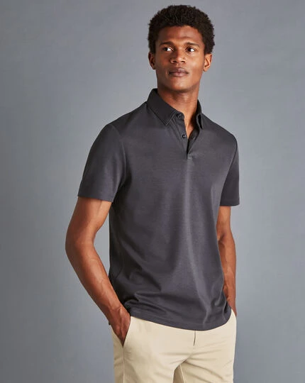 Combed Cotton Polo – Dark Grey