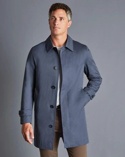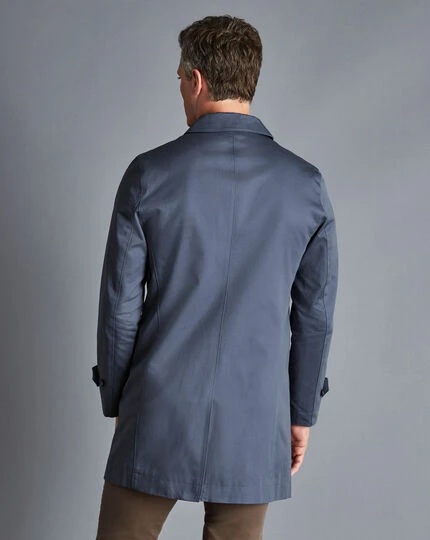 When the weather isn’t playing ball, reach for our classic raincoat. The single-breasted design is crafted from smooth cotton and features a showerproof finish that quickly recovers from creases to keep you looking sharp. Embroidered underarm eyelets are on hand to provide additional ventilation, while the back vent and soft shoulders ensure a comfortable fit. This raincoat is an assured choice, whatever your day has in store. Wear yours over a suit or more casual layers.