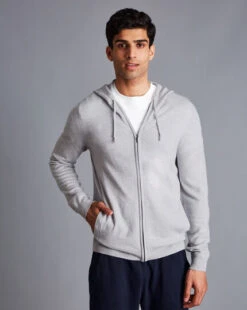 Merino Cashmere Hooded Zip Through Sweater – Silv