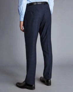 The magic behind this exceptional collection is the wool. We’ve used 100% Super 120s wool, a soft yet durable yarn with natural crease recovery that ensures you look sharp all day. That’s not all. We’ve looked again at the tailoring for this collection, enhancing the cut to create even more flattering fits. Our slim-fit suit has a sleek, contemporary outline. The rich navy wool tones with a whole range of other shades, while the check weave gives a touch of timeless British character. Add a white poplin shirt and silk tie to create an all-time classic ensemble.