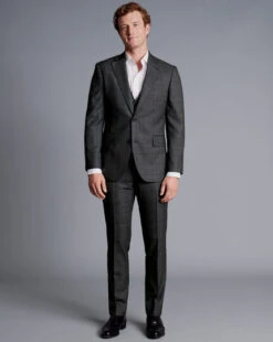Make an elegant statement in this subtly checked suit in a rich, charcoal hue. Naturally hard-wearing Merino wool stays smooth all day, so you’ll look fresh from morning coffee to evening tipple.